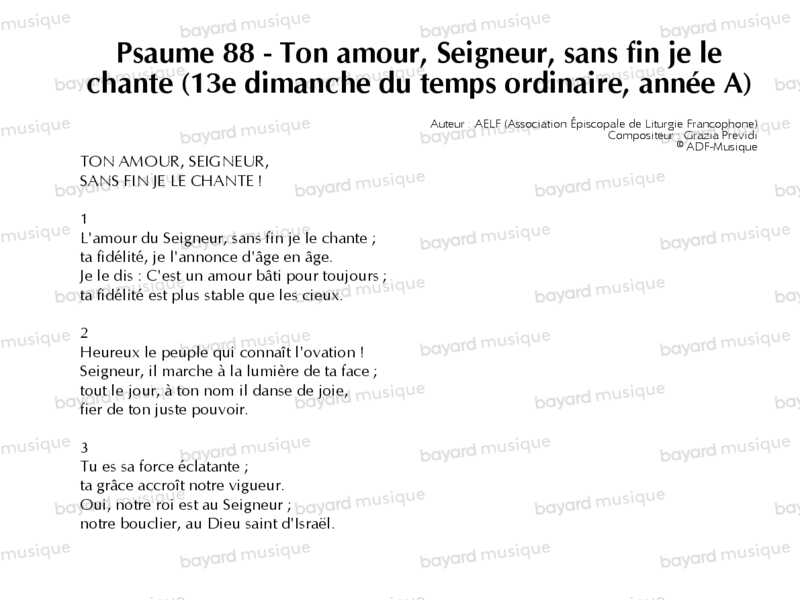Psaume 88 - Ton amour, Seigneur, sans fin je le chante (Noël, messe de la veille au soir, années A, B et C)