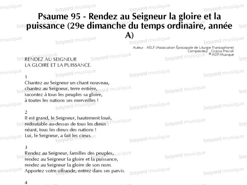 Psaume 95 - Rendez au Seigneur la gloire et la puissance (29e dimanche du temps ordinaire, année A)