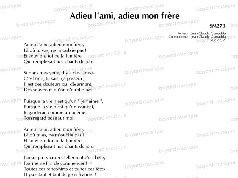 Interprété par Jean-Claude Gianadda et le chœur ADF.