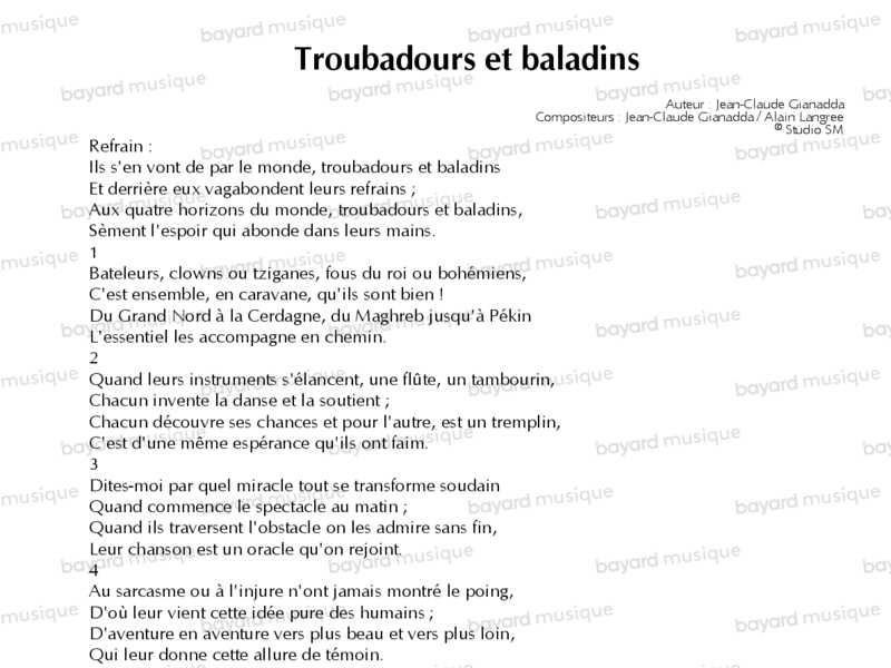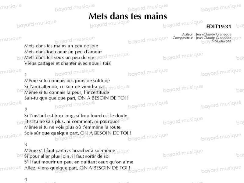 Interprété par Jean-Claude Gianadda et le collectif d'artistes du MEJ.