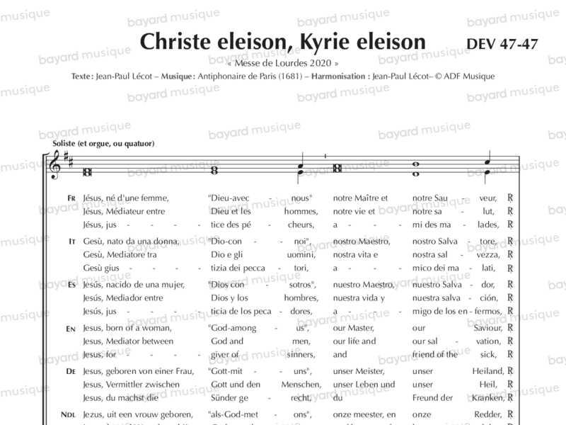 Partition issue de la messe de Lourdes 2020, avec les traductions en 6 langues et un couplet complémentaire sur le thème de l’Immaculée Conception.