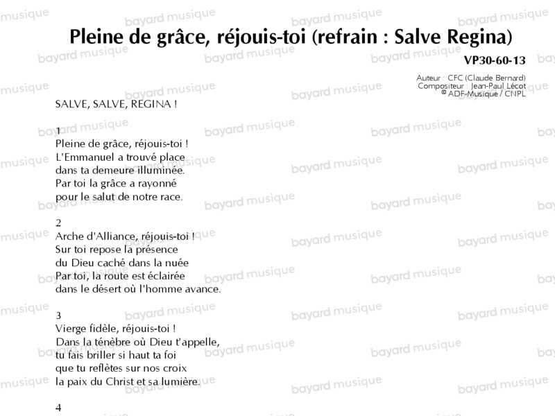 Interprété par le Quatuor vocal du sanctuaire de Lourdes, Jean-Paul Lécot et Alain Chérel, direction Frédéric Dupuy. ATTENTION ! Ce chant est court.