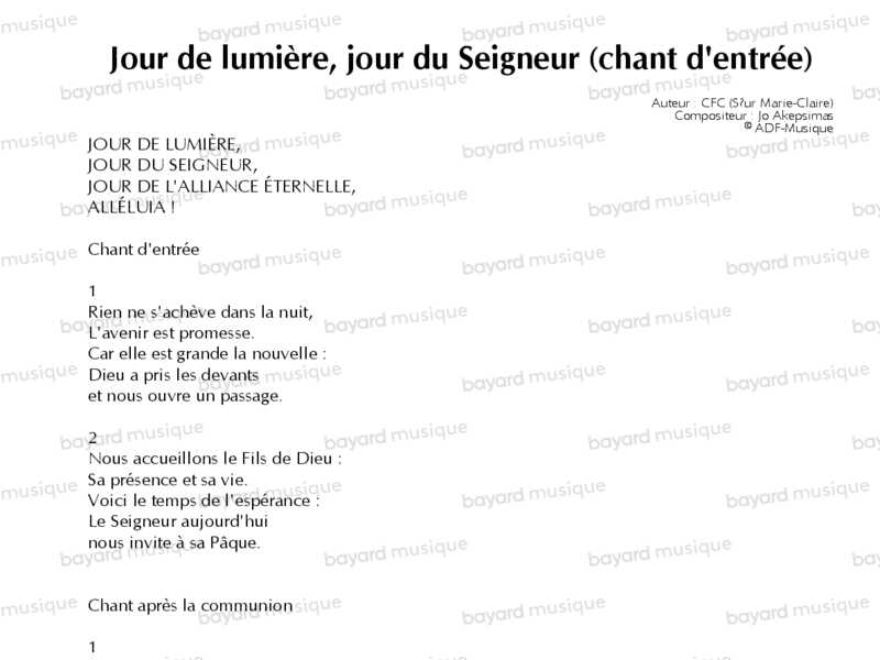Jour de lumière, jour du Seigneur (chant après la communion)