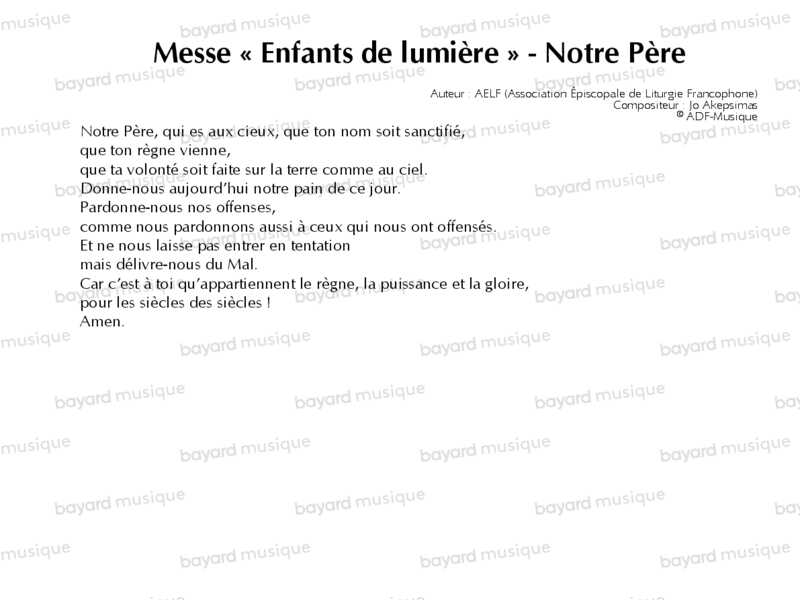 Messe « Enfants de lumière » - Notre Père (version monodique)