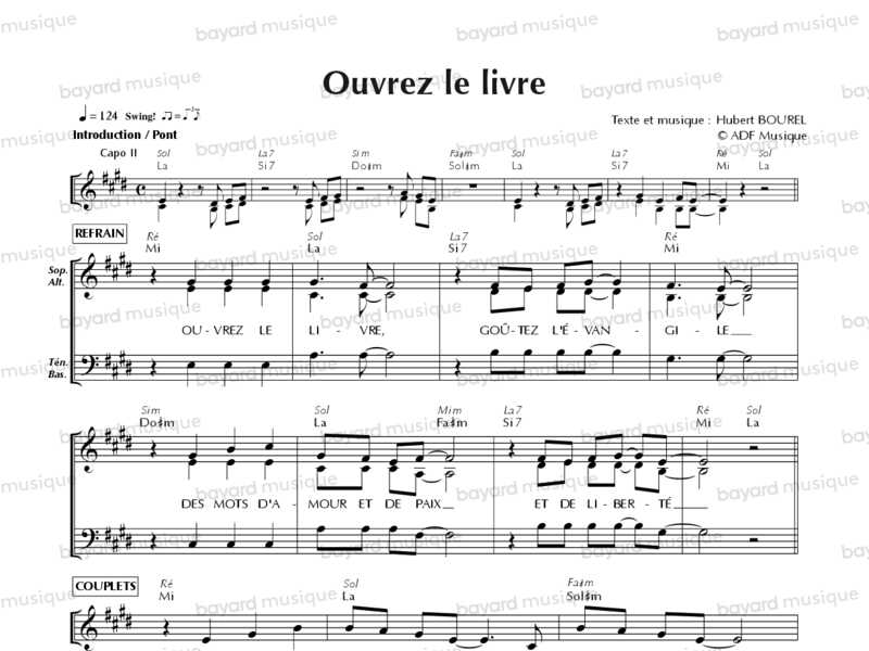 La partition comprend : Seigneur, prends pitié - Alléluia - Acclamation de la parole - Sanctus - Agnus