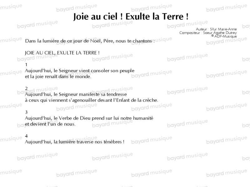 Interprété par sœur Agathe et le chœur ADF. ATTENTION ! Ce chant est court.