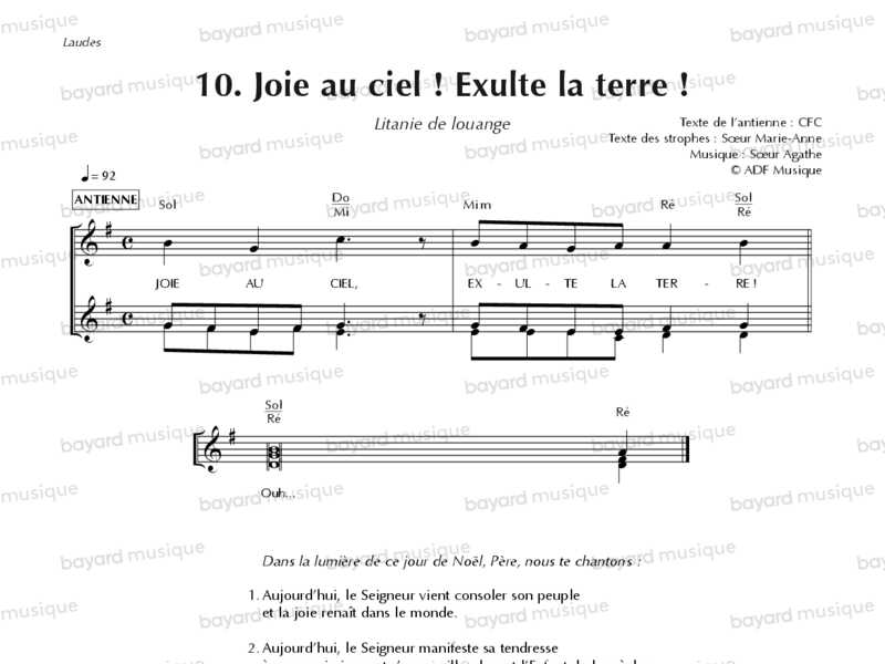 10. Laudes • Litanie de louange : Joie au ciel ! Exulte la Terre !