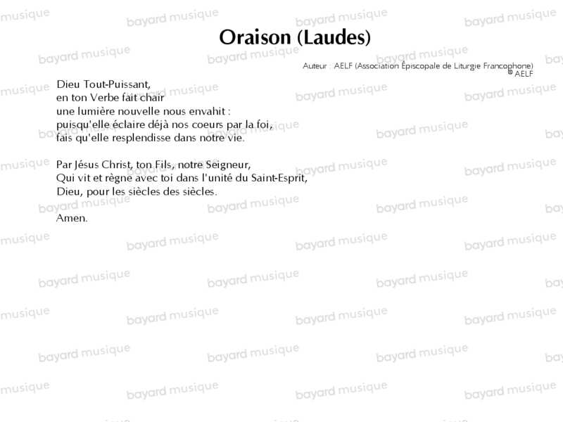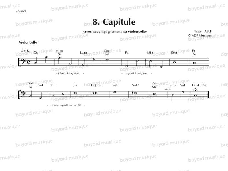 Partition identique pour les Laudes, le Milieu du Jour et les Vêpres. Comprend : accompagnement violoncelle