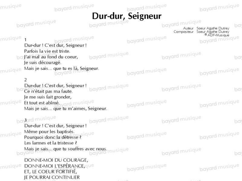 Interprété par Sœur Agathe.