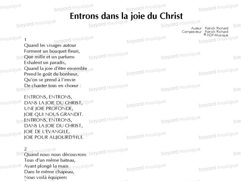 Entrons dans la joie du Christ