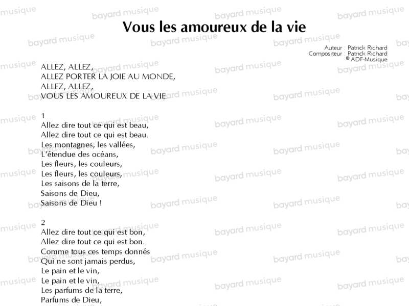 Vous, les amoureux de la vie