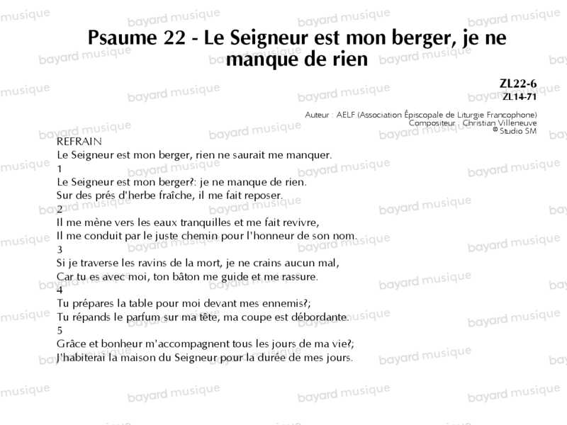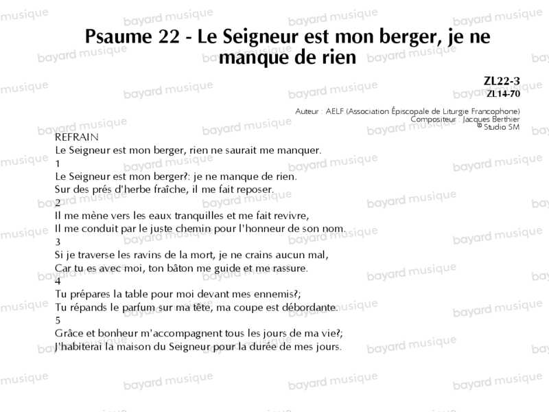 Psaume 22 - Le Seigneur est mon berger, je ne manque de rien