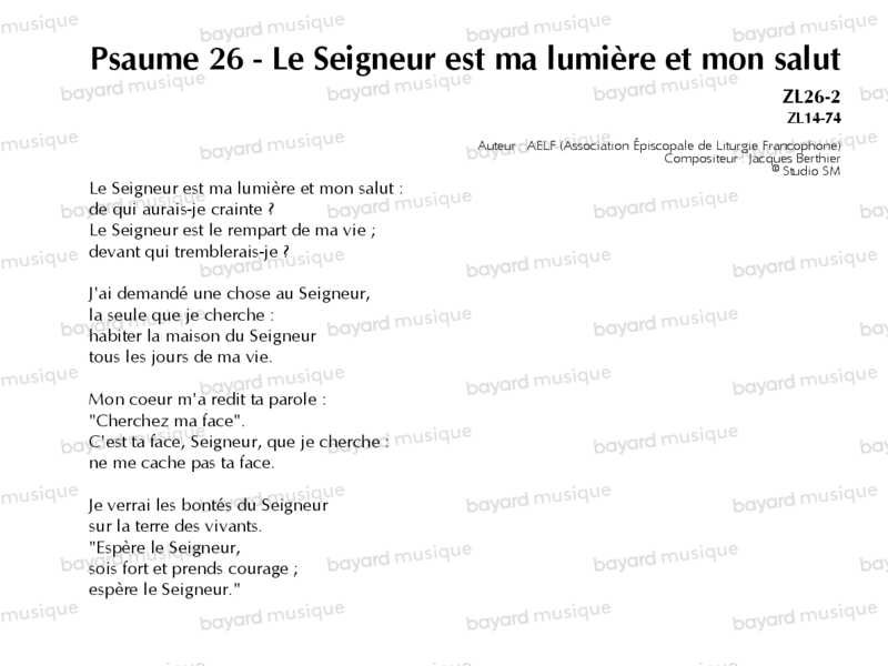 Psaume 26 - Le Seigneur est ma lumière et mon salut