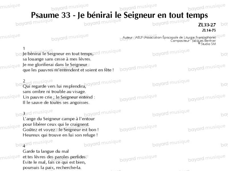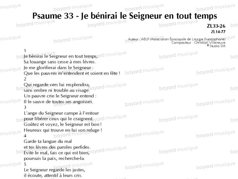 Psaume 33 - Je bénirai le Seigneur en tout temps