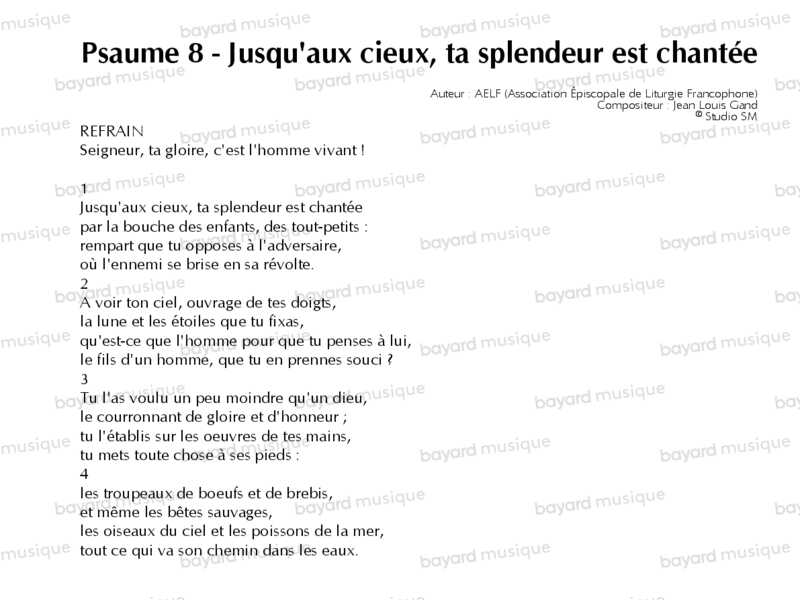 Psaume 8 - Jusqu'aux cieux, ta splendeur est chantée