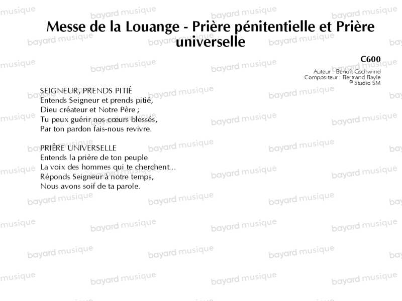 Messe de la louange : Prière universelle - Prière pénitentielle (Instrumental)