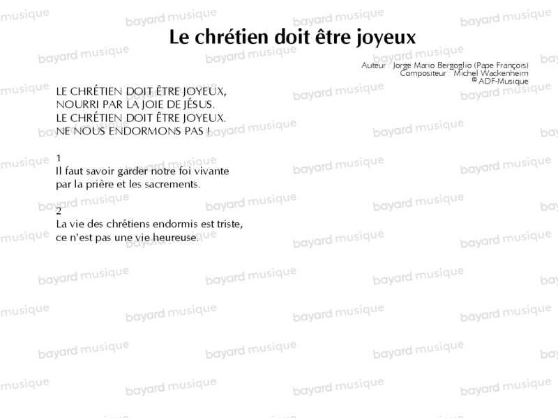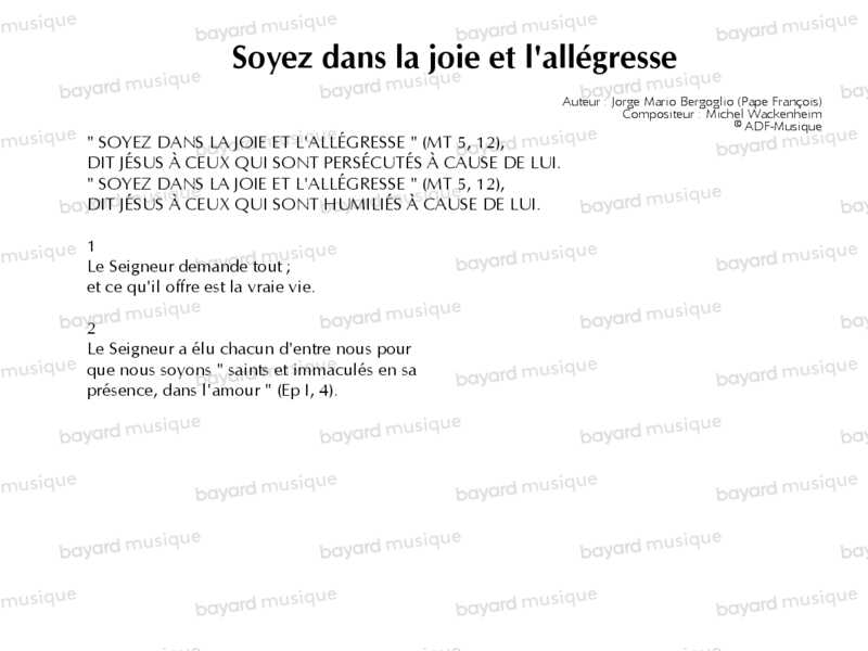 15 hymnes de joie du pape François mises en musique par Michel Wackenheim.