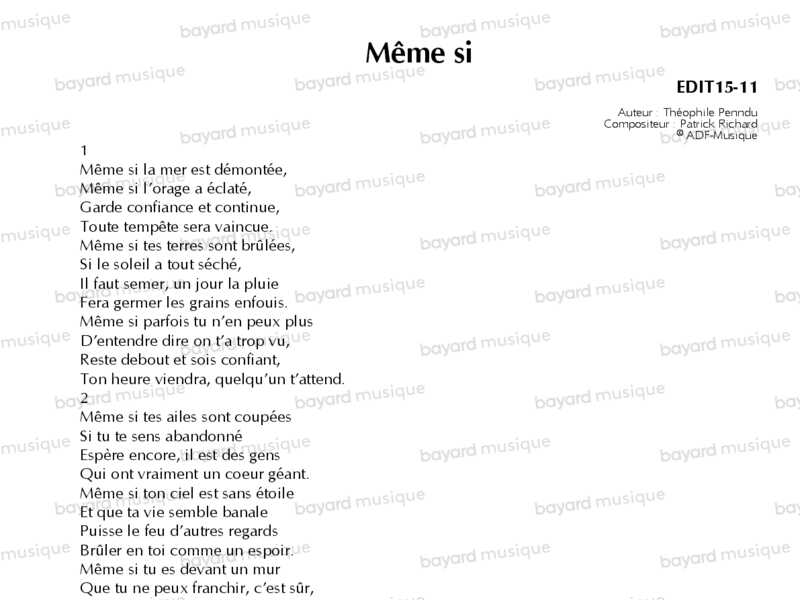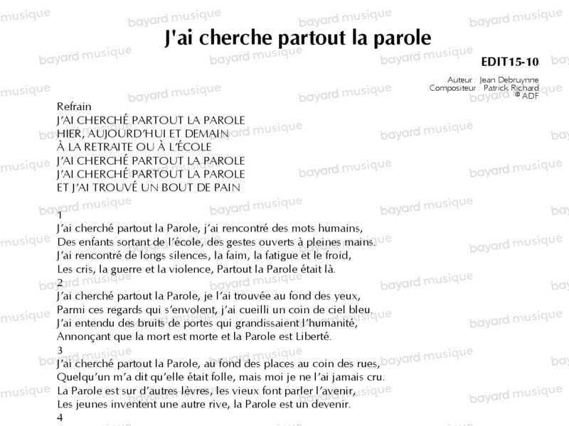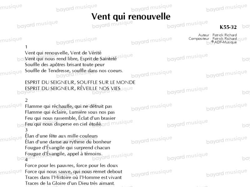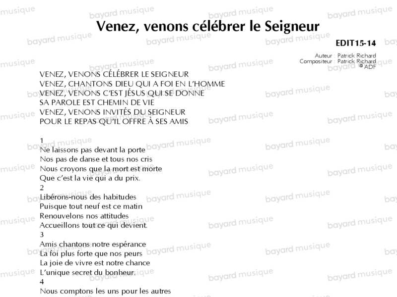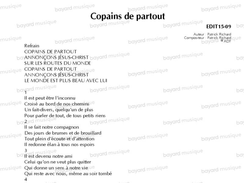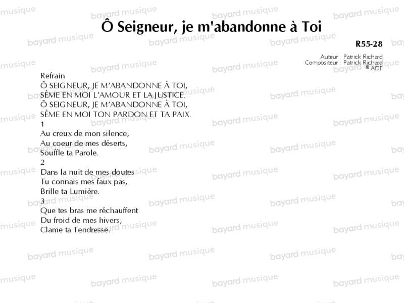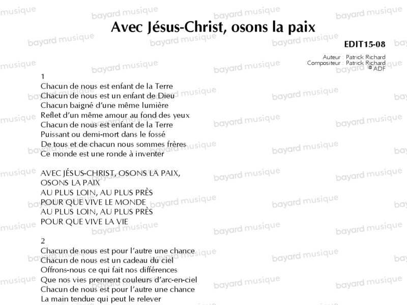 Interprété par Patrick Richard et le chœur ADF-Bayard Musique. ATTENTION ! Ce chant est court.