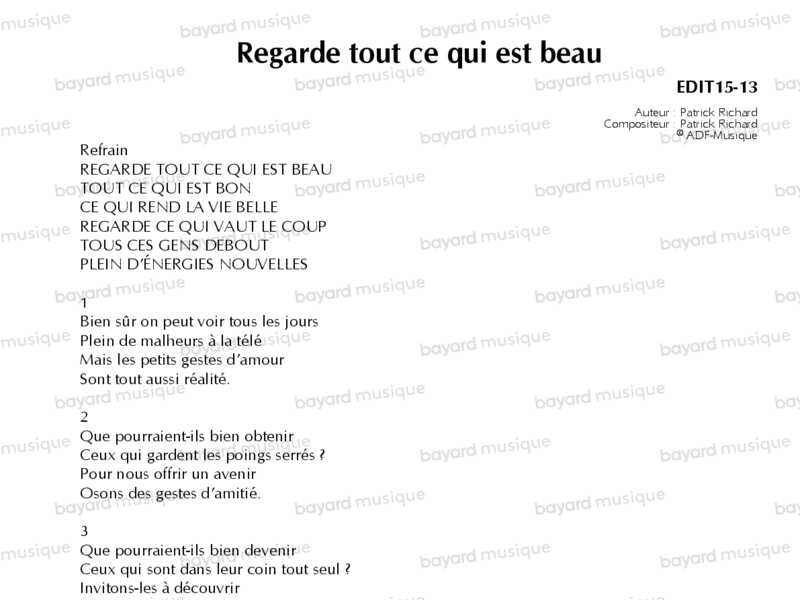 Interprété par Patrick Richard et le chœur ADF-Bayard Musique. ATTENTION ! Ce chant est court.