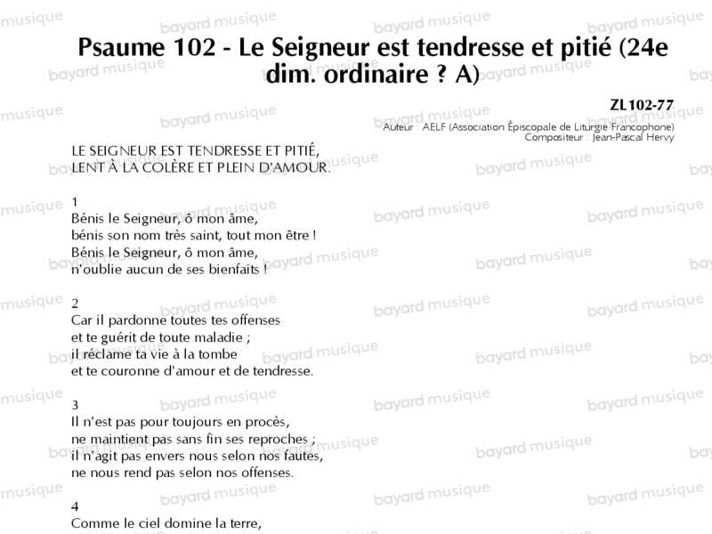 Psaume 102 - Le Seigneur est tendresse et pitié (24e dimanche du temps ordinaire, année A)