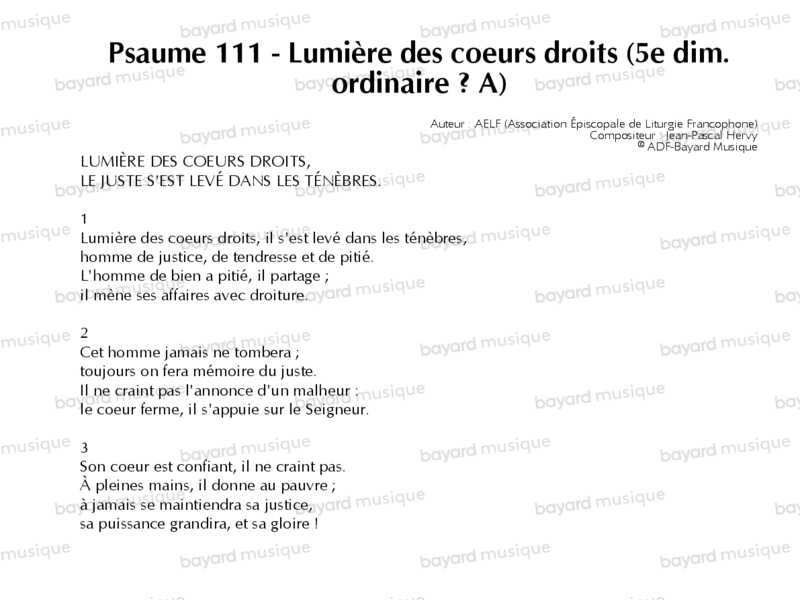 Psaume 111 - Lumière des cœurs droits (5e dimanche du temps ordinaire, année A)