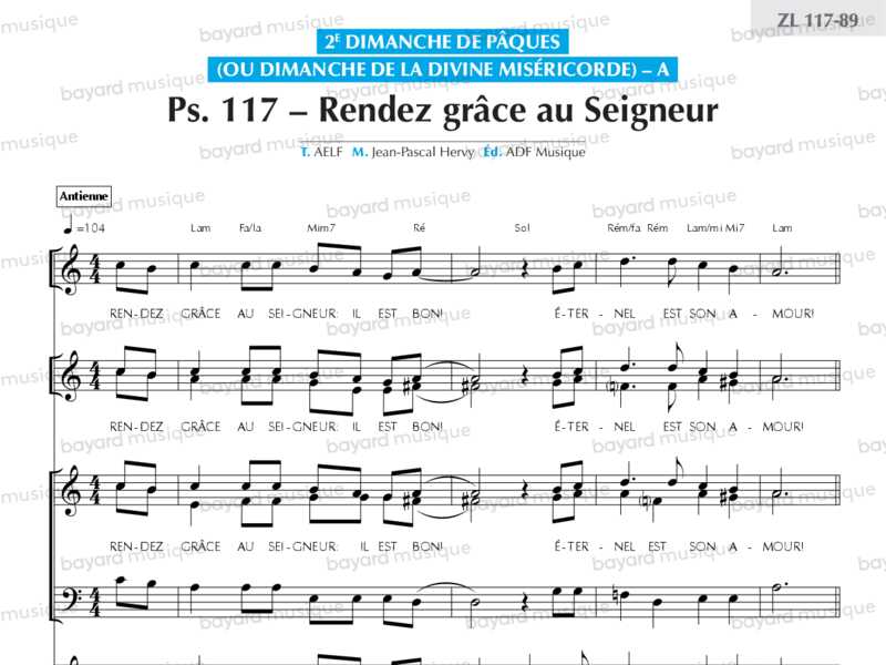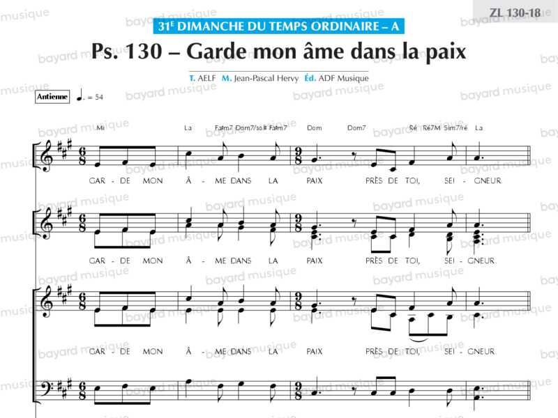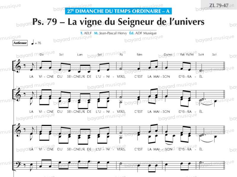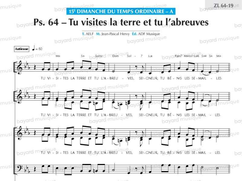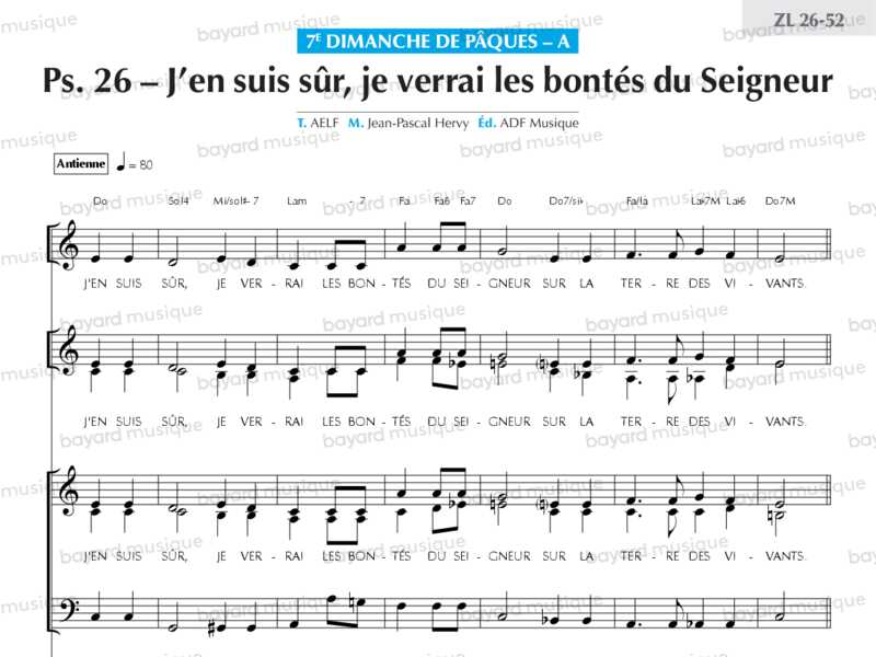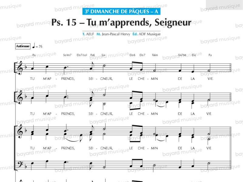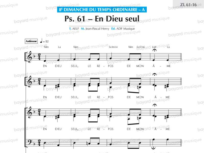 L’intégralité des psaumes pour l’année A mis en musique par Jean-Pascal Hervy. Un accompagnement d’orgue accessible, l’antienne à l’unisson, une version à voix égales pour les communautés et une version à 3 voix mixtes pour les chorales.
