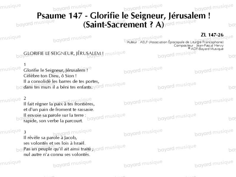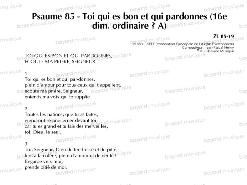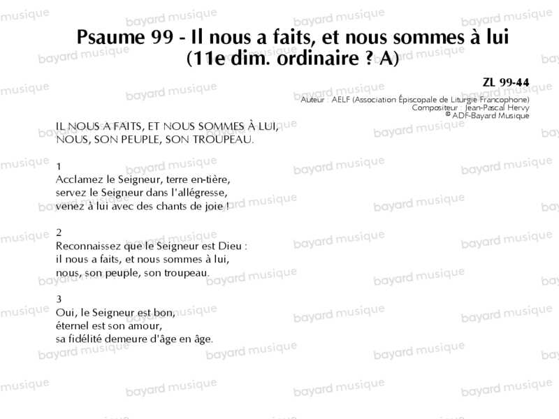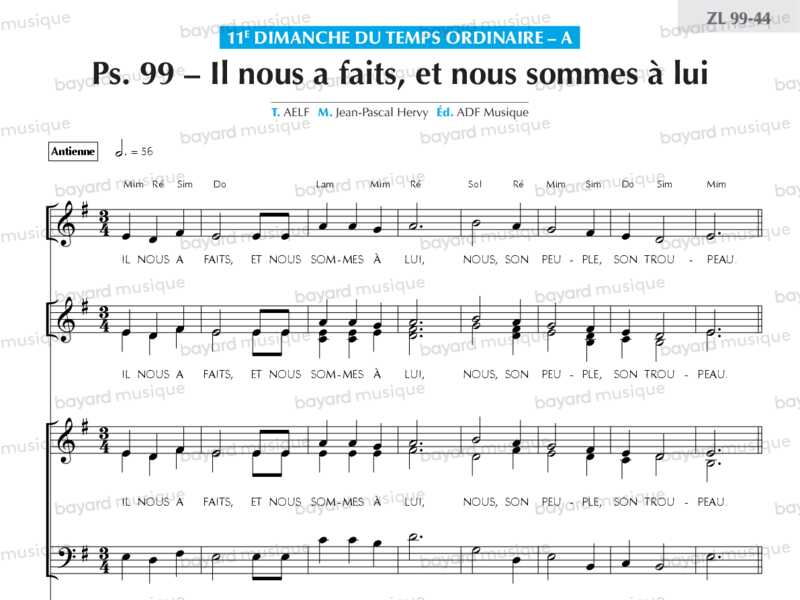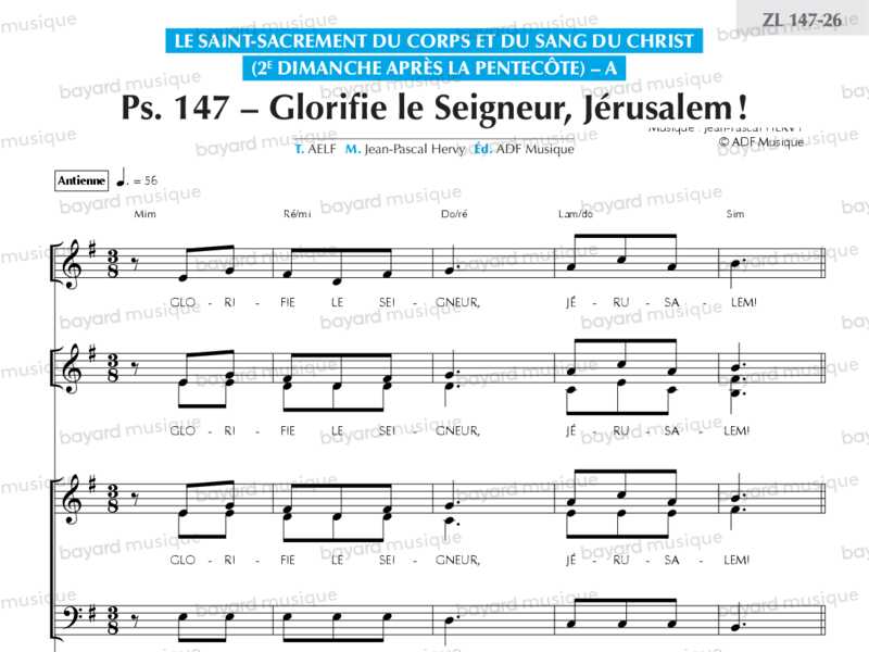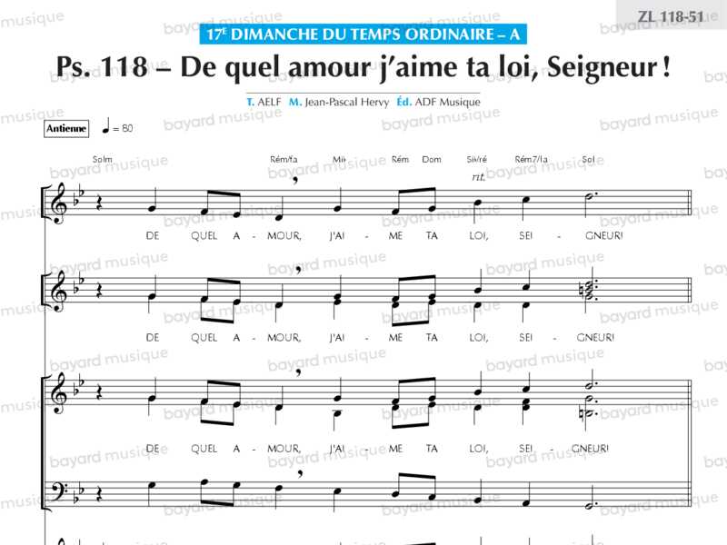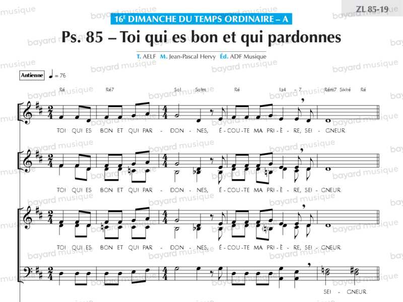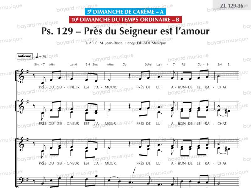 L’intégralité des psaumes pour l’année A mis en musique par Jean-Pascal Hervy. Un accompagnement d’orgue accessible, l’antienne à l’unisson, une version à voix égales pour les communautés et une version à 3 voix mixtes pour les chorales.