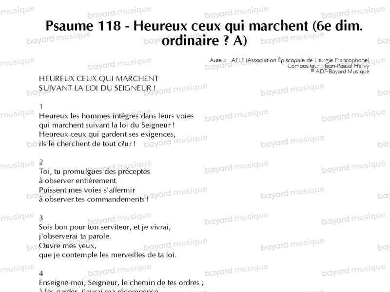 Psaume 118 - Heureux ceux qui marchent (6e dimanche du temps ordinaire, année A)