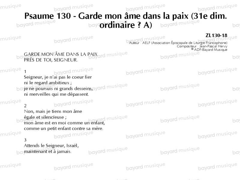 Psaume 130 - Garde mon âme dans la paix (31e dimanche du temps ordinaire, année A)