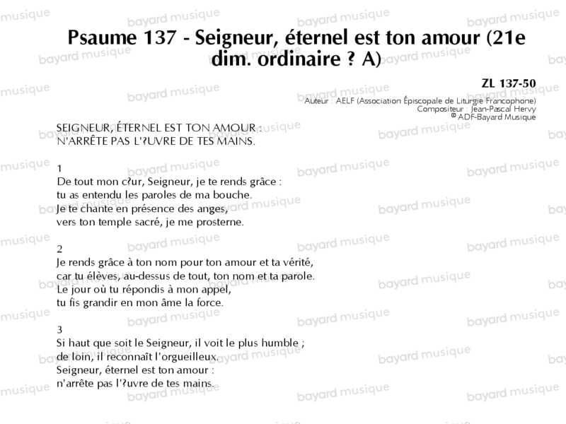 Psaume 137 - Seigneur, éternel est ton amour (21e dimanche du temps ordinaire, année A)