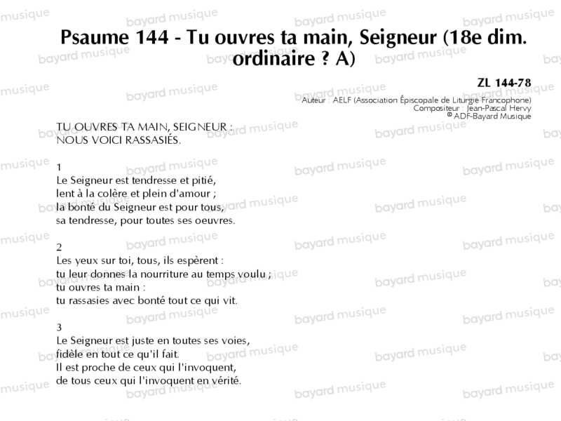 Psaume 144 - Tu ouvres ta main, Seigneur (18e dimanche du temps ordinaire, année A)