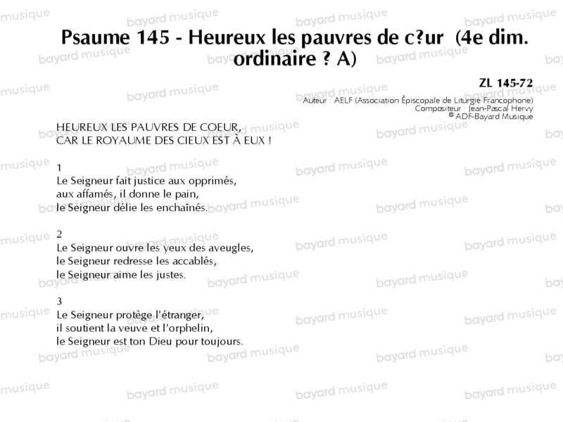 14. Psaume 145 - Heureux les pauvres de cœur (4e dimanche du temps ordinaire, année A)