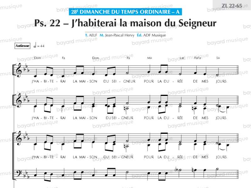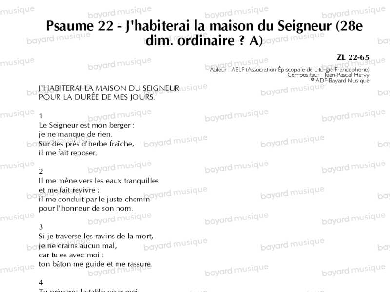 Psaume 22 - J'habiterai la maison du Seigneur (28e dimanche du temps ordinaire, année A)
