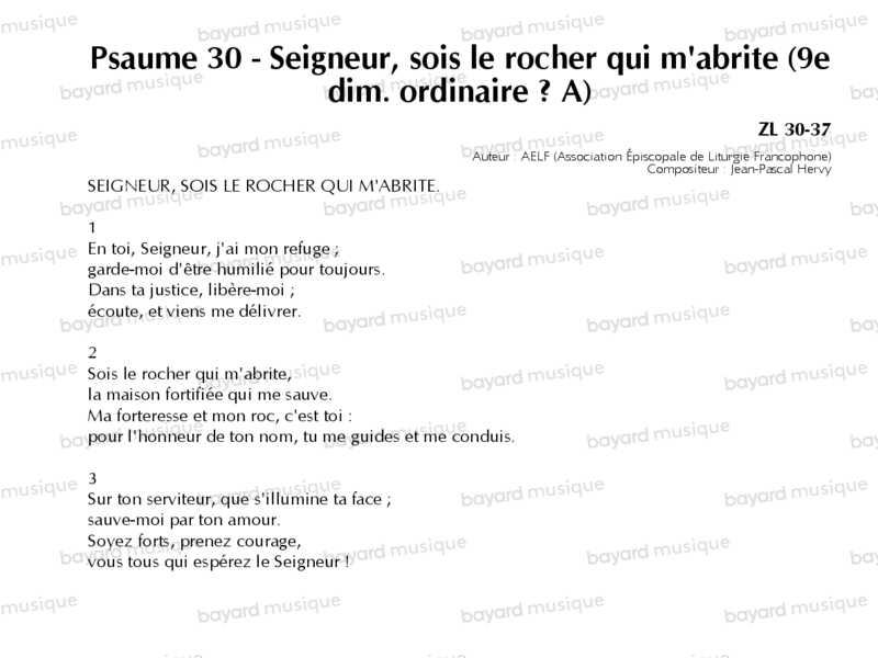 20. Psaume 30 - Seigneur, sois le rocher qui m'abrite (9e dimanche du temps ordinaire, année A)