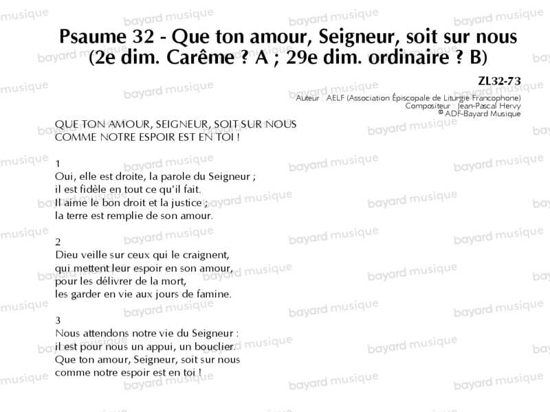 Psaume 32 - Que ton amour, Seigneur, soit sur nous (2e dimanche de Carême, année A)