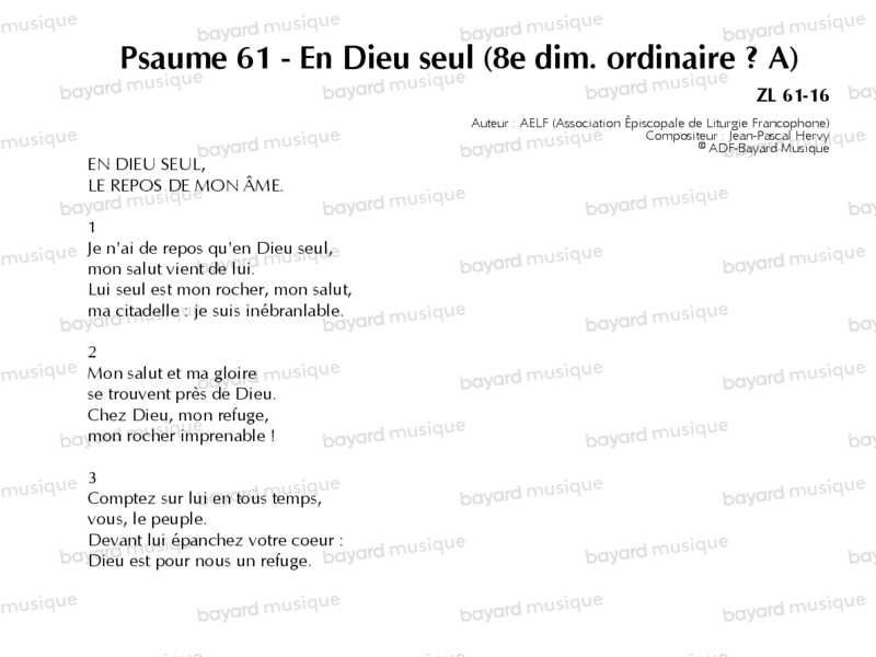 19. Psaume 61 - En Dieu seul (8e dimanche du temps ordinaire, année A)