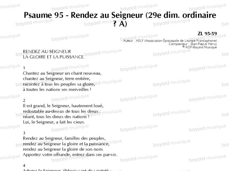 70. Psaume 95 - Rendez au Seigneur (29e dimanche du temps ordinaire, année A)