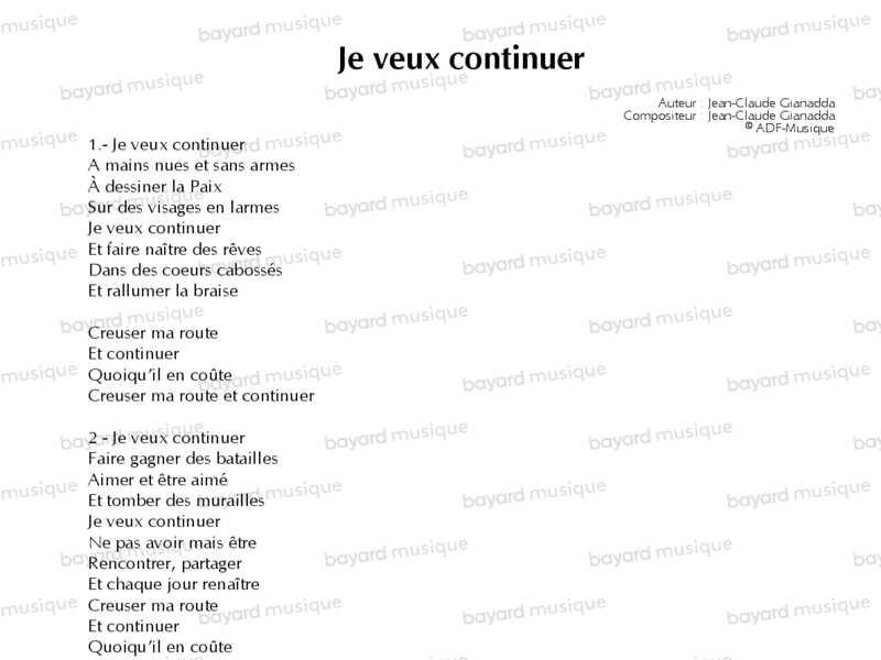 Avec ce nouvel album, Jean-Claude Gianadda invite à poursuivre la route, à « continuer ». 18 chansons (dont 6 inédites) pour vivre sa foi et prier, pour mieux vivre ensemble et poursuivre le chemin.