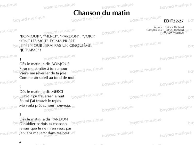Interprété par Patrick Richard et le chœur de l'école Sainte-Anne de Thorigné.