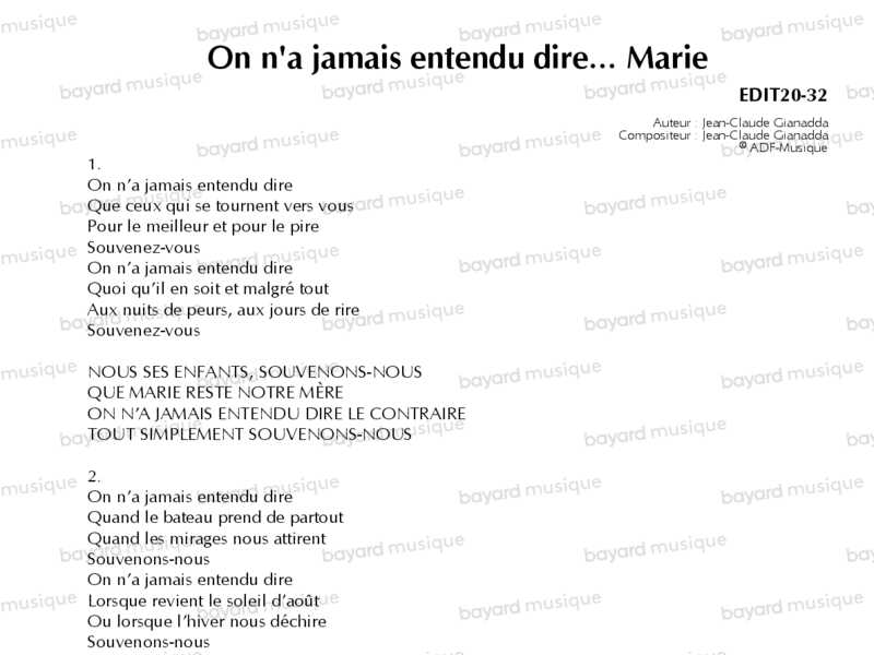 On n'a jamais entendu dire... Marie
