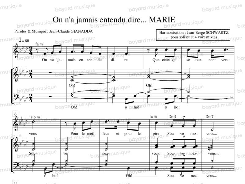 Harmonisation : Jean-Serge SCHWARTZ pour soliste et 4 voix mixtes