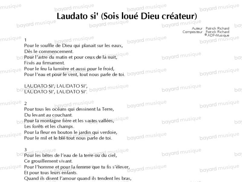 Laudato Si (Sois loué Dieu créateur)