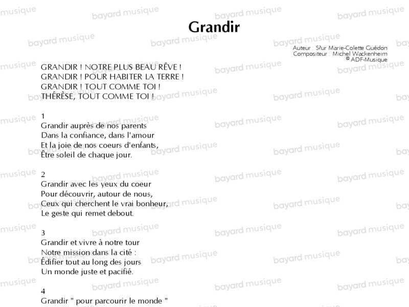 Interprété par Sœur Agathe.