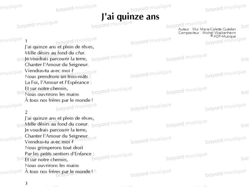 J’ai quinze ans