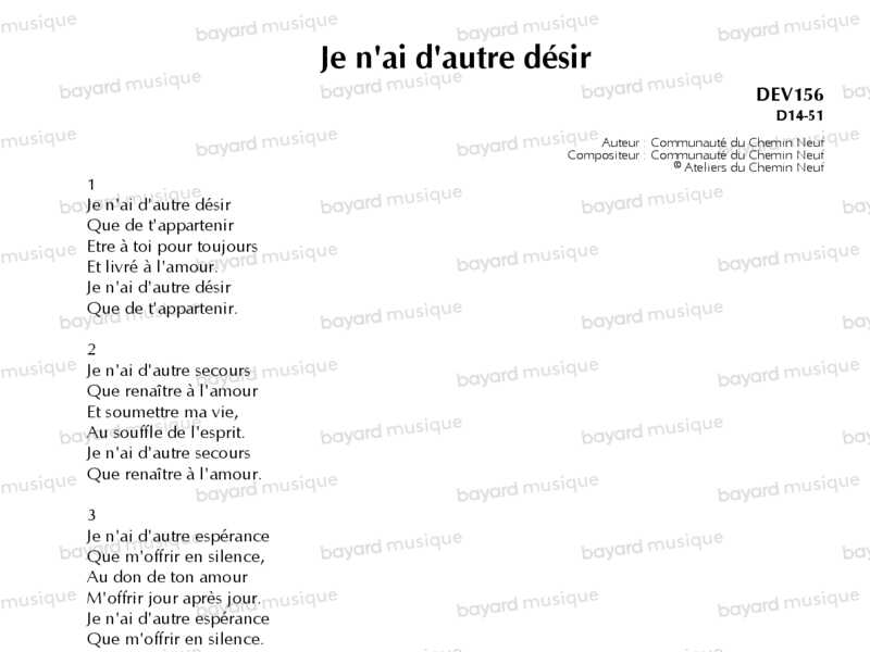 Je n'ai d'autre désir