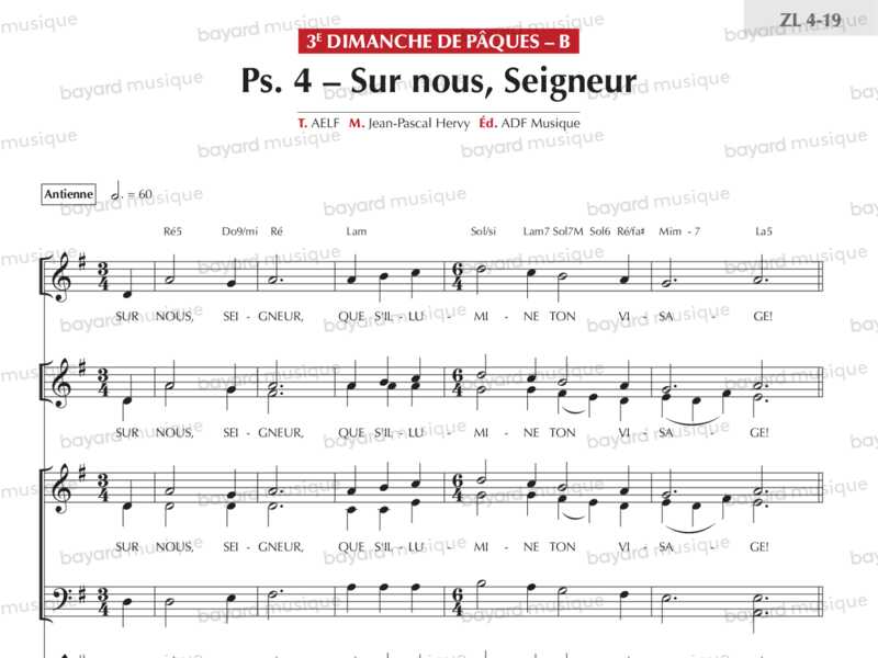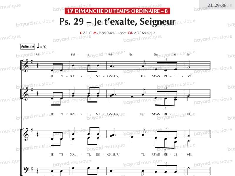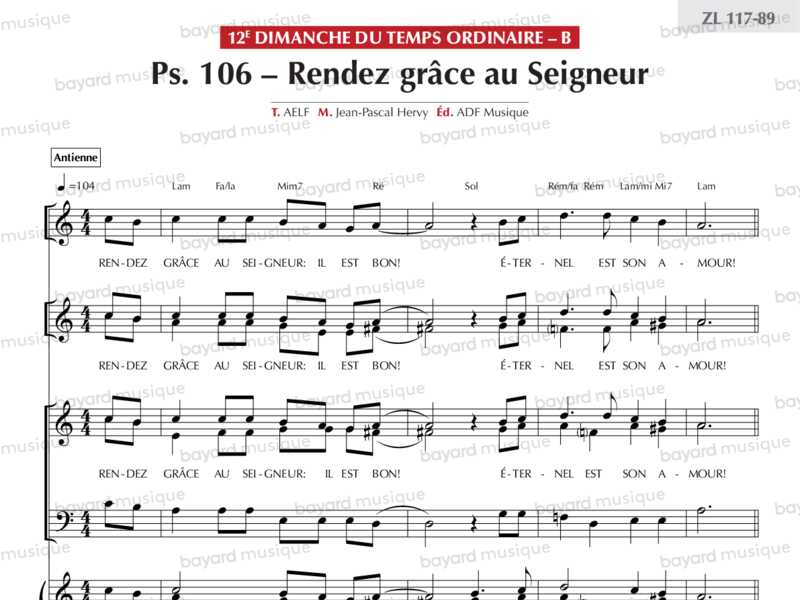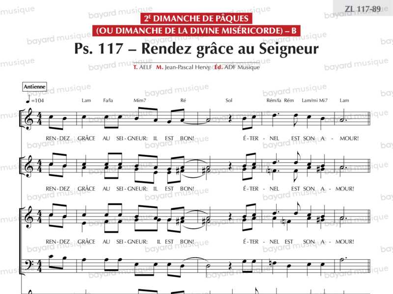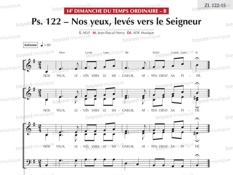 Les psaumes pour les dimanches et fêtes de l’année B mis en musique par Jean-Pascal Hervy. Un accompagnement d’orgue accessible, l’antienne à l’unisson, une version à voix égales pour les communautés et une version à 3 voix mixtes pour les chorales.