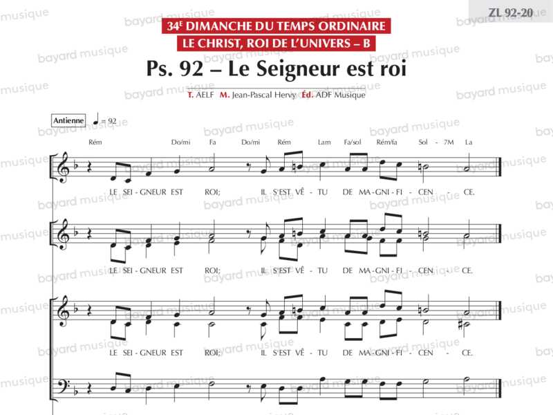 Psaume 92 "Le Seigneur est roi" (34e dimanche du temps ordinaire (Le Christ, Roi de l'univers), année B)