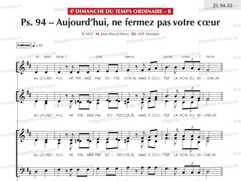 Psaume 94 "Aujourd'hui, ne fermez pas votre cœur" (4e dimanche du temps ordinaire, année B)