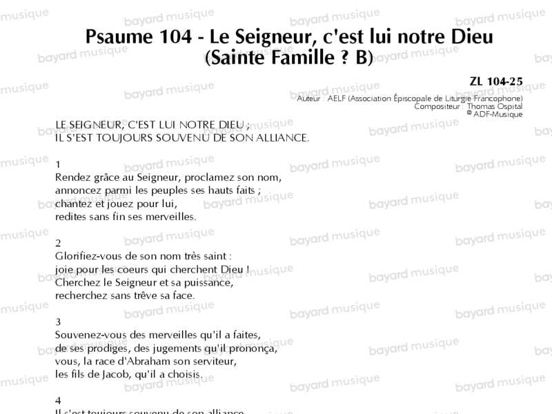 10. Psaume 104 "Le Seigneur, c'est lui notre Dieu" (Sainte Famille, année B)