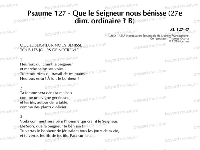 84. Psaume 127 "Que le Seigneur nous bénisse" (27e dimanche du temps ordinaire, année B)